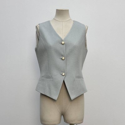 Grey Short Suit Vest Commuter V-neck Sleeveless Waistcoat Top