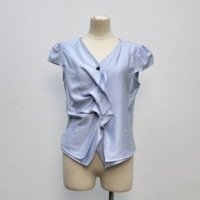 Light Blue V-neck Ruffled Sleeveless Top With Unique Design