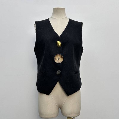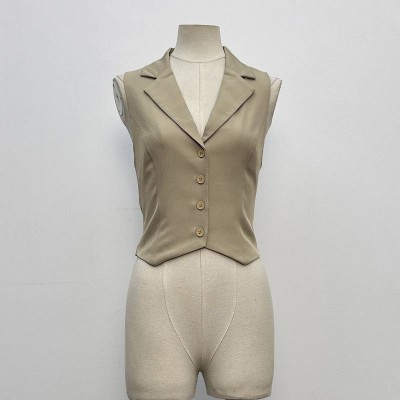 Simple Commuter V-neck Single-breasted Suit Vest Slim Sleeveless Waist Cinching Top