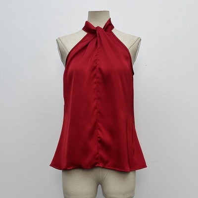 Wine Red Halter Satin Sleeveless Elegant Top