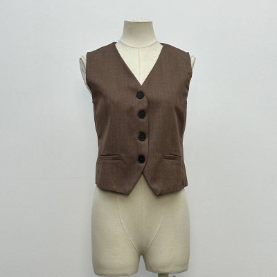 Simple Commute Brown Sleeveless Suit Vest Short Outerwear Top