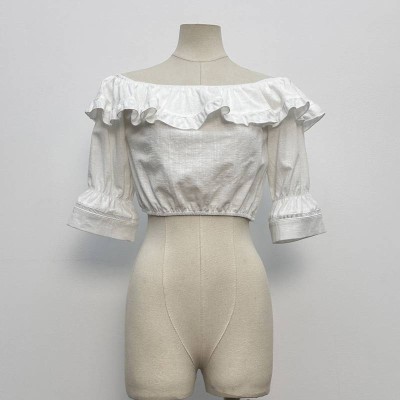 White Off-Shoulder Camisole Cropped Top Puff Sleeve Slim Fit Elegant Top