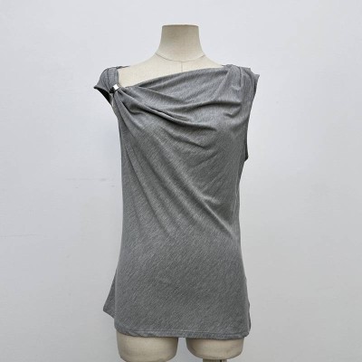 Gray Asymmetric Off-Shoulder Sleeveless Elegant Top