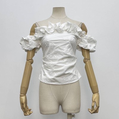 Sweet Ruffle Off-the-shoulder Embroidered Waist-cinched Short Top