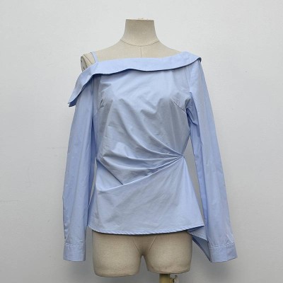 Elegant White Off-the-Shoulder Waist-Top Irregular Design Niche Oblique Shoulder Top