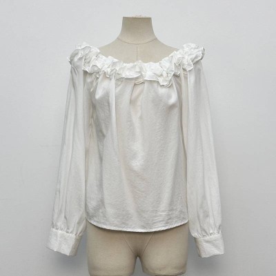 French Ruffle Off-Shoulder Long Sleeve Top Elegant Loose White Blouse