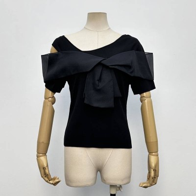 Black Off-Shoulder Bow-Knit Top