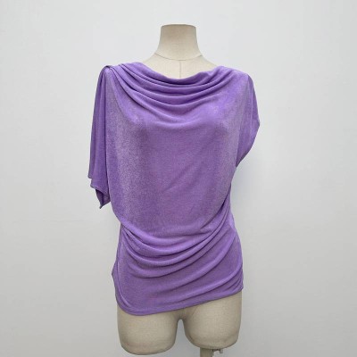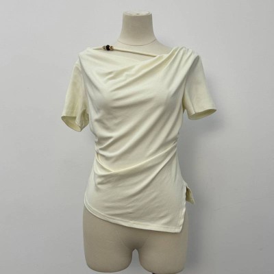 Designer Off-Shoulder Pleated Short-Sleeve T-Shirt for Women, Niche Irregular Split Top