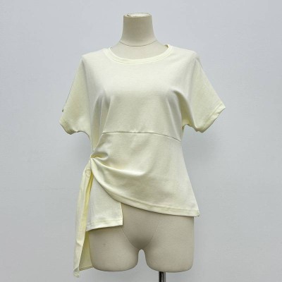 Design Side Tie Short Sleeve T-shirt Loose Crew Neck Irregular Hem Top