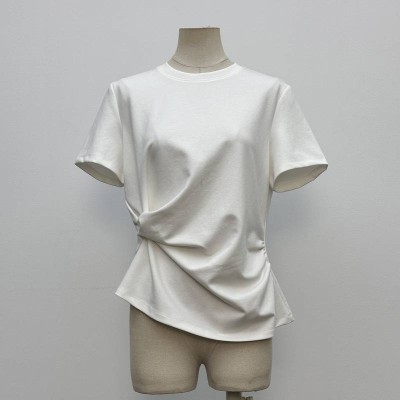 Asymmetrical Neck Twist Short-sleeve T-shirt Slim Fit Stylish Top