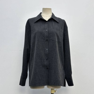 Dark Gray Simple Lapel Long Sleeve Shirt