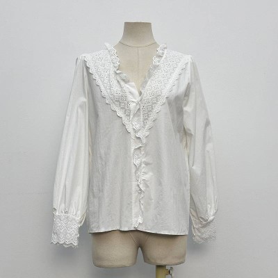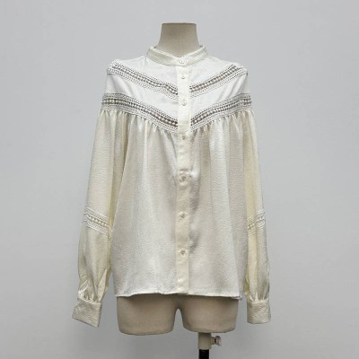 French Stand Collar Lace Patchwork Long Sleeve Shirt Loose Versatile White Commuter Top