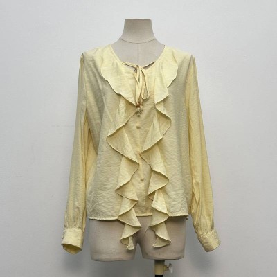 Light Yellow Ruffled Tie-neck Long Sleeve Blouse