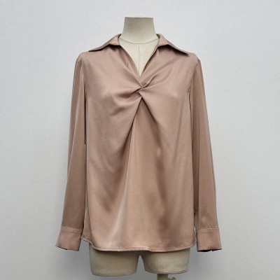 Elegant Twist V-neck Long Sleeve Shirt Glossy Commute Top