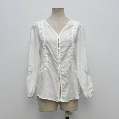 V-neck Embroidered Hollow-out Long-sleeve Shirt Loose Breathable Linen-like Top