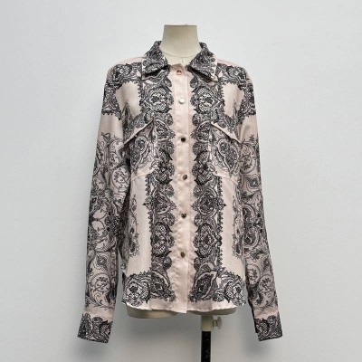 Vintage Pattern Lapel Long Sleeve Shirt Loose Temperament Printed Blouse
