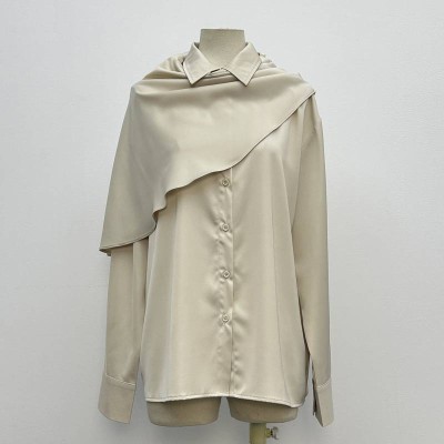 Elegant Satin Shawl-style Long-sleeved Shirt Lapel Design Commuter Top