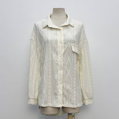 Gentle Hollow-out Lapel Long-sleeve Shirt Loose Casual Button-up Top