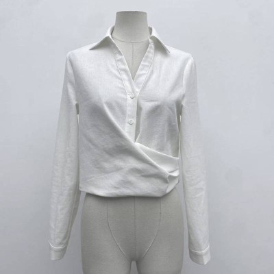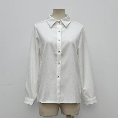 Simple Jacquard Long-sleeved Lapel Shirt Elegant Commuter White Blouse