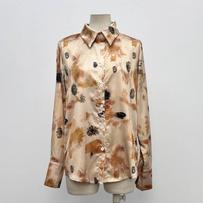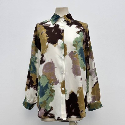 Vintage Tie-dye Design Long-sleeve Shirt Niche Lapel Unique Button Blouse