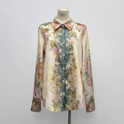 Vintage Printed Lapel Long Sleeve Shirt Loose Chiffon Blouse