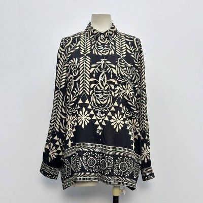 Vintage Pattern Lapel Long Sleeve Shirt Loose Casual Printed Blouse