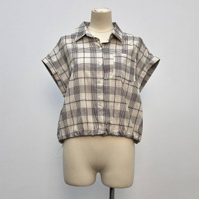 Vintage Plaid Lapel Short-sleeve Shirt Short Waist Loose Top