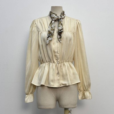 Cream Yellow Loose Long-sleeved Lapel Shirt Simple Casual Button-up Top