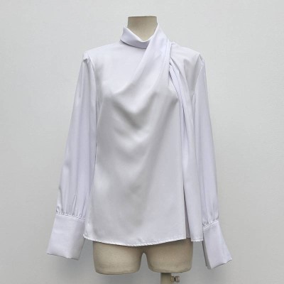 Designer Tie-neck Half-high Collar Long-sleeve White Shirt Elegant Commuter Satin Blouse