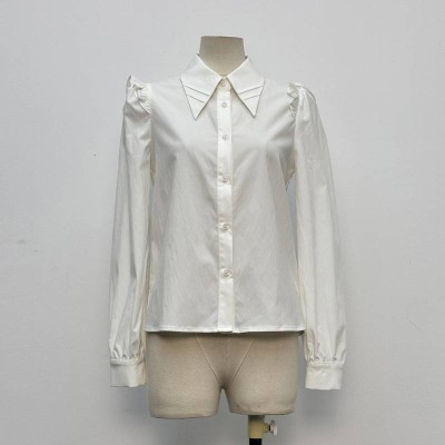French Pointed Collar Ruffled White Long Sleeve Shirt