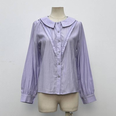 Light Purple Peter Pan Collar Long Sleeve Shirt Gentle Style Button-down Loose Slim Top