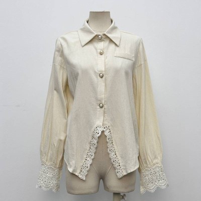 French Lace Patchwork Lapel Shirt Gentle Style Long Sleeve Temperament Top