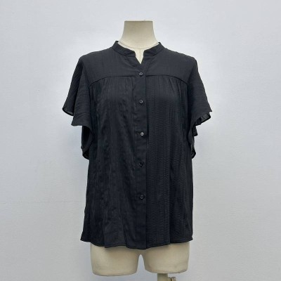 Black Stand Collar Flutter Sleeve Textured Shirt Temperament Commuter Short Sleeve Blouse