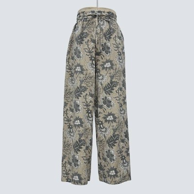Vintage Botanical Print Drawstring High Waist Wide-Leg Casual Pants