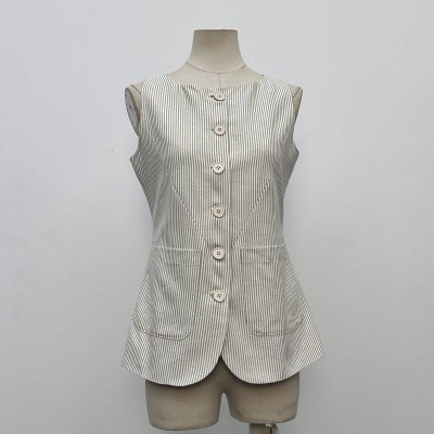 Simple Striped Sleeveless Round Neck Single-breasted Vest-style Top